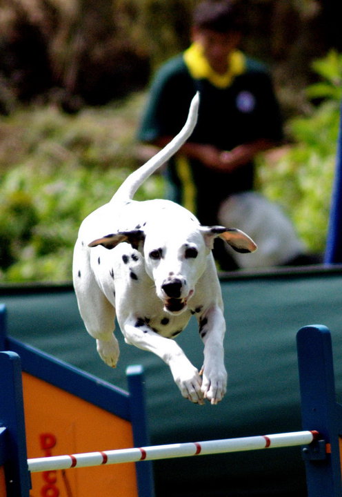 Tambien esta el impresionante Spot, el único dálmata que ha llegado lejos en el Agility Nacional superando las reglamentaciones que año tras año se ponen más competitivas pero esto no es impedimento ni barrera que con trabajo no pueda superarse. De la mano de César Romero llegó a Grado 2 y ya hizo su primer combinado cerado rumbo al Grado 3. Otro dupla que enorgullece a nuestra escuela Adiestra Perú.