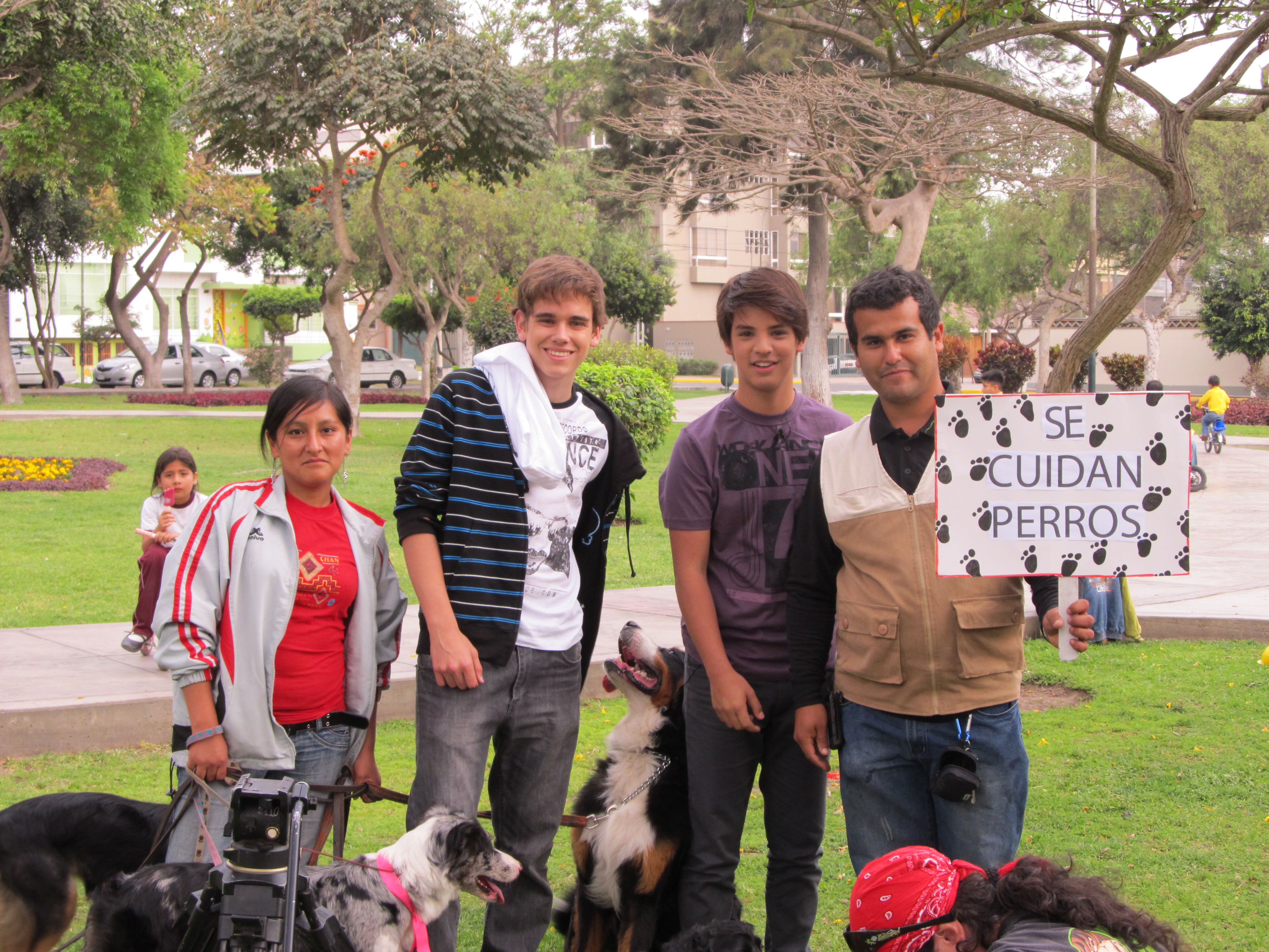 Con Lupe y nuestra jauría posamos al lado de los protagonistas César y Alejandro 😉