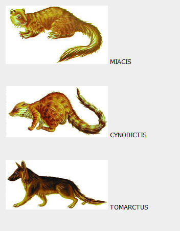 Todos los carnívoros actuales tienen por ancestro el miacis, una especie de gineta (animal similar a a un can y a un felino) arborícola de América del norte que vivió en el eoceno (hace unos 40 o 50 millones de años). La diferenciación de los cánidos primitivos comienza a partir de Oligoceno y tiene lugar fundamentalmente en América del Norte. Hace unos 35 millones de años, el Hesperocyon, un animal con un aspecto entre felino y canino, abandonó progresivamente la vida de un arborícola para cazar en el suelo. El Mesocyon, del tamaño de un coyote y aspecto robusto, tomó el relevo hacia finales del Oligoceno (hace 23 millones de años). Finalmente, aparecería Tomarctus, hace unos 10 o 15 millones de años. Con un cráneo más voluminoso, se le considera cuenta en la actualidad con 38 especies. El generó Canis está representado por el lobo, el chacal, el coyote y las formas domesticadas, el dingo de Australia y el perro.